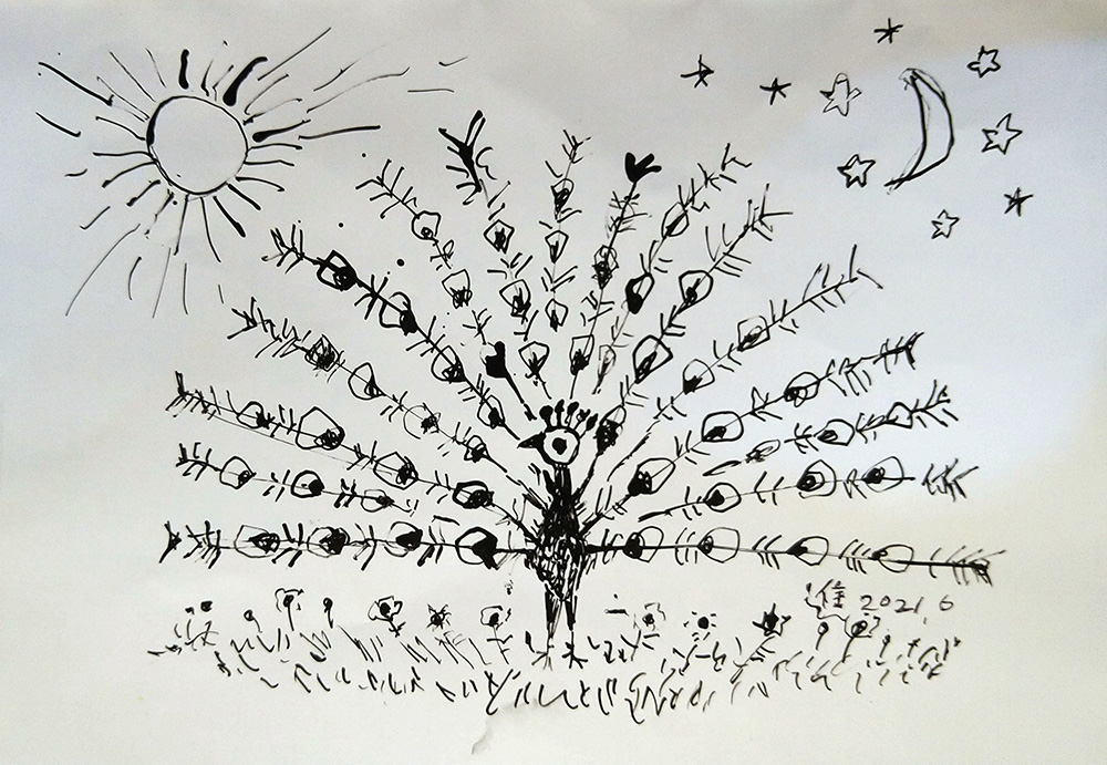 邀請到台灣首屈一指圖畫書作家插畫家的鄭明進先生為《九龍吟》九孔葫蘆絲葫身設計一款。孔雀一直是傳統葫蘆絲上描繪高貴賢明的象徵,鄭先生以此為依據使用了更適切明朗新穎插圖做設計。日月星辰環繞孔雀開屏,讓九孔葫蘆絲開啟了一個嶄新的未來。